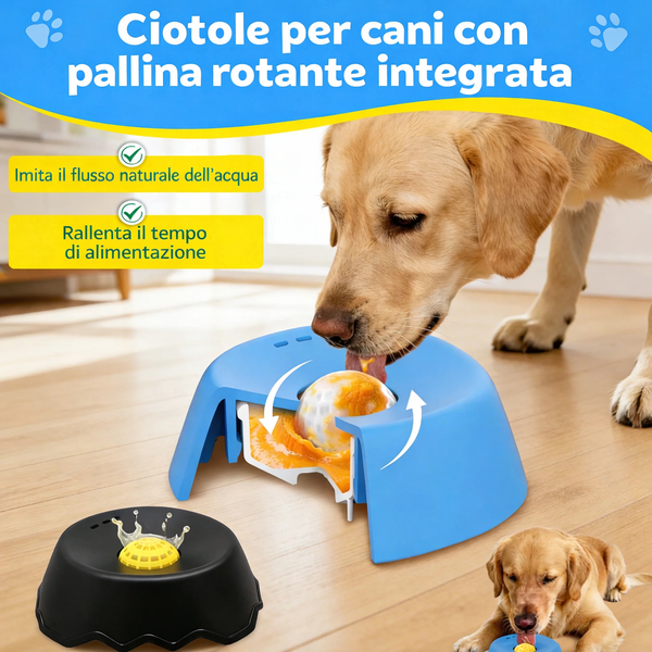 Progettata per favorire una digestione più sana, questa ciotola distribuisce il cibo poco alla volta grazie alla sfera rotante integrata. Ideale per yogurt, brodo di ossa e snack liquidi.